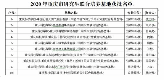近日,重庆市教育委员会公布了2020年研究生联合培养基地名单,我校与中国石油天然气股份有限公司西南油气田分公司共建的资源与环境研究生联合培养基地等10个基地获批为重庆市研究生联合培养基地。