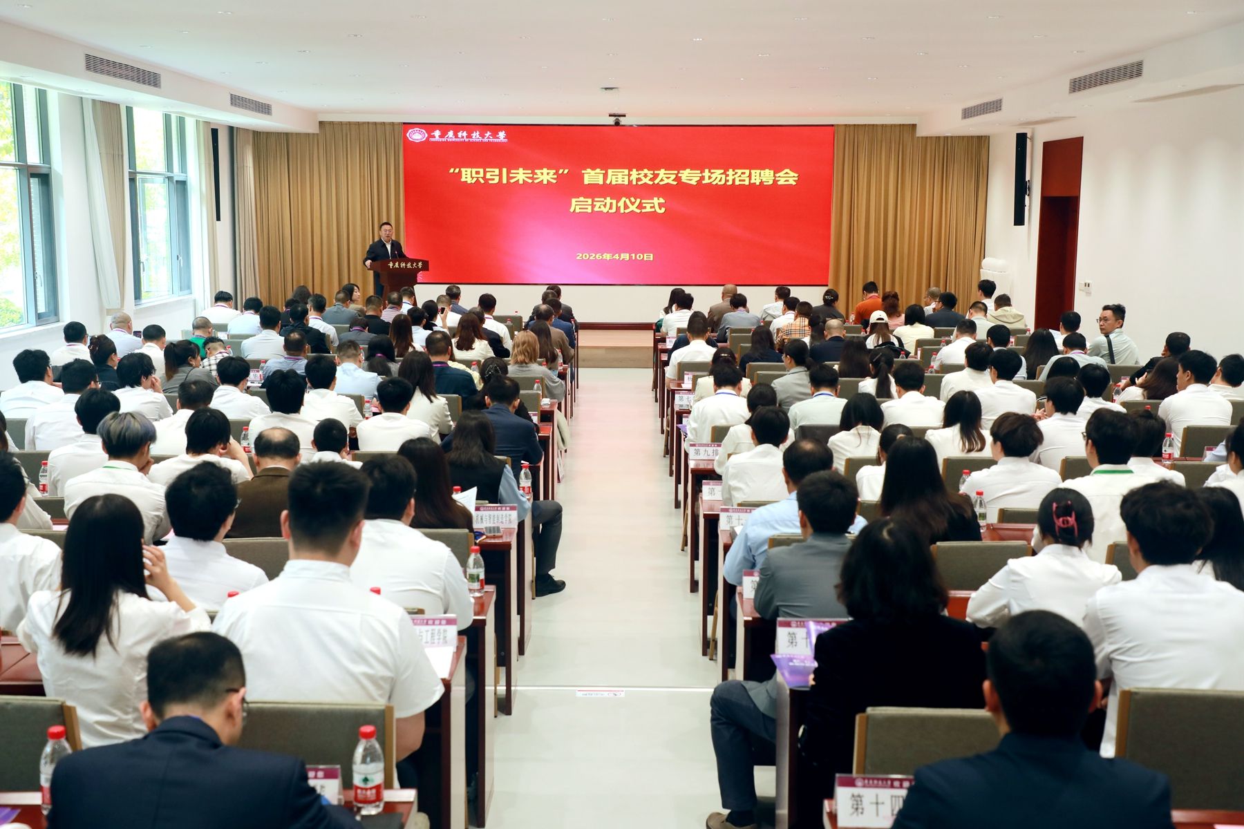 4月10日,“职引未来”首届校友专场招聘会启动仪式在教学主楼B117会议室举行。党委书记黎德龙、党委副书记谭勇,党政办公室、党委宣传部、招生就业处、继续教育学院、校友会及各二级学院负责人,近50家校友企业、80余位企业代表及2026届毕业生代表参加活动。谭勇主持启动仪式。