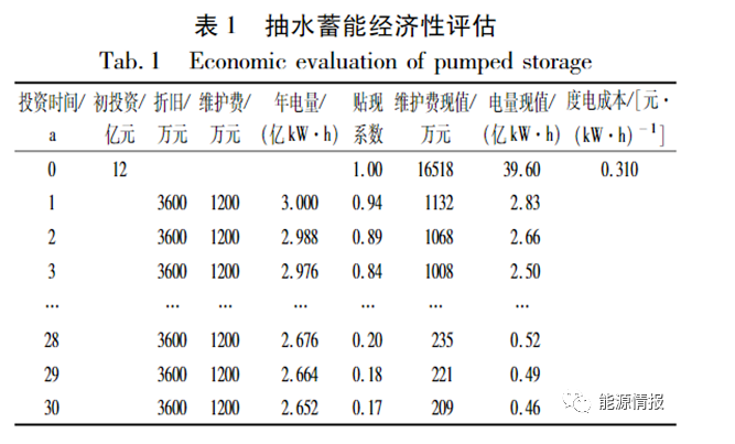 抽水蓄能电站经济性评估(表1),按200MW项目初始投资成本6元/W,年运维成本0.06元/W,寿命为30a,残值为10%,每年运行次数400次,放电深度100%,储能循环效率75%等条件,对抽水蓄能电站进行财务经济性评价建模,测算储能度电成本约为0.31元/(kW・h)。